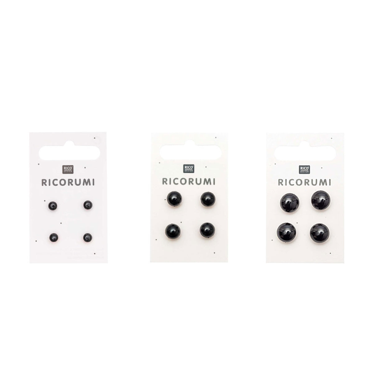 Give your character a truly adorable face with these small button eyes! Each card contains several pairs of eyes in the same size, packaged on a hang tag for easy display.