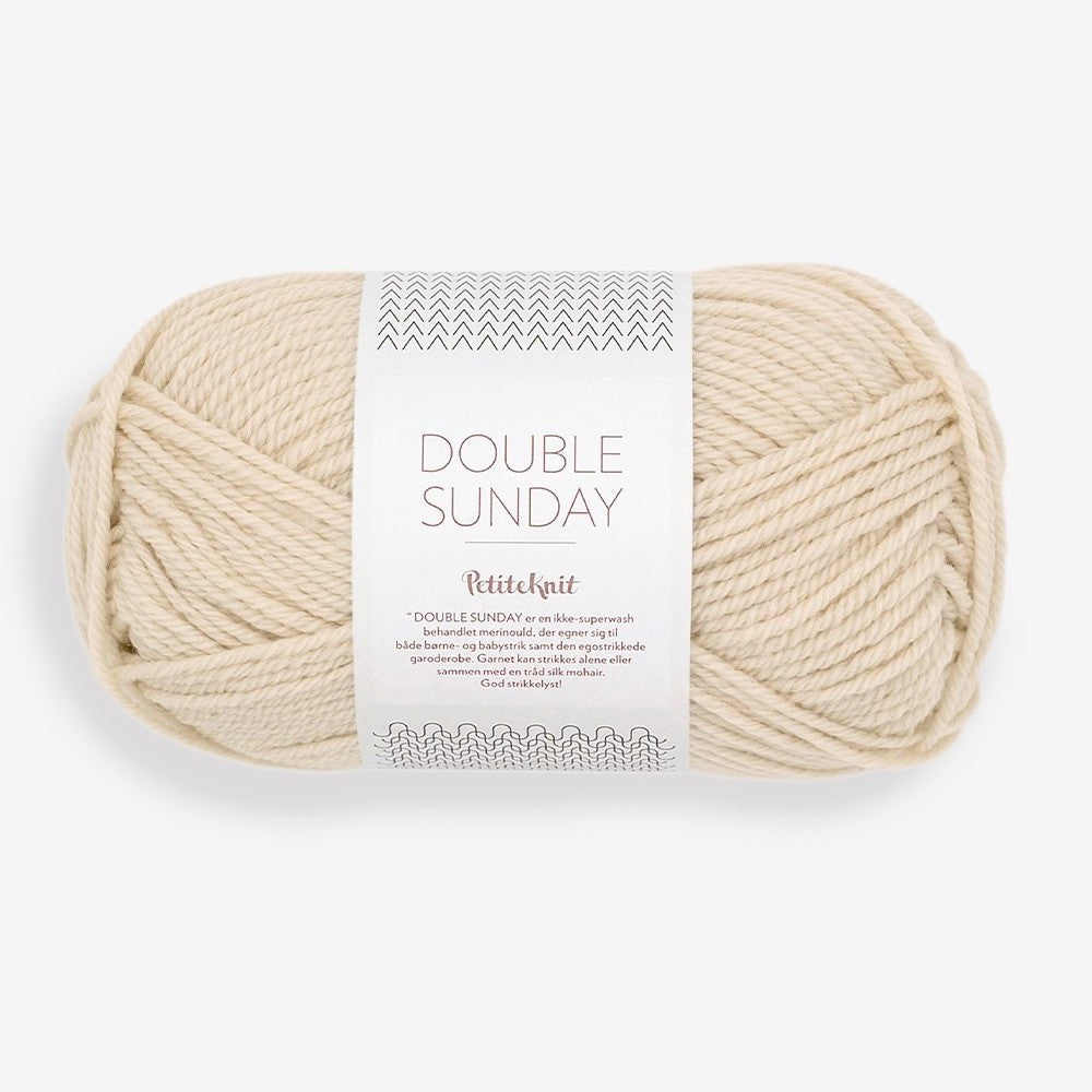 Fabriqué à partir de 100% de laine mérinos, Double Sunday est le fil de base idéal : un fil peu traité au toucher naturel qui convient à tout, des accessoires aux pulls en passant par les articles pour enfants.
